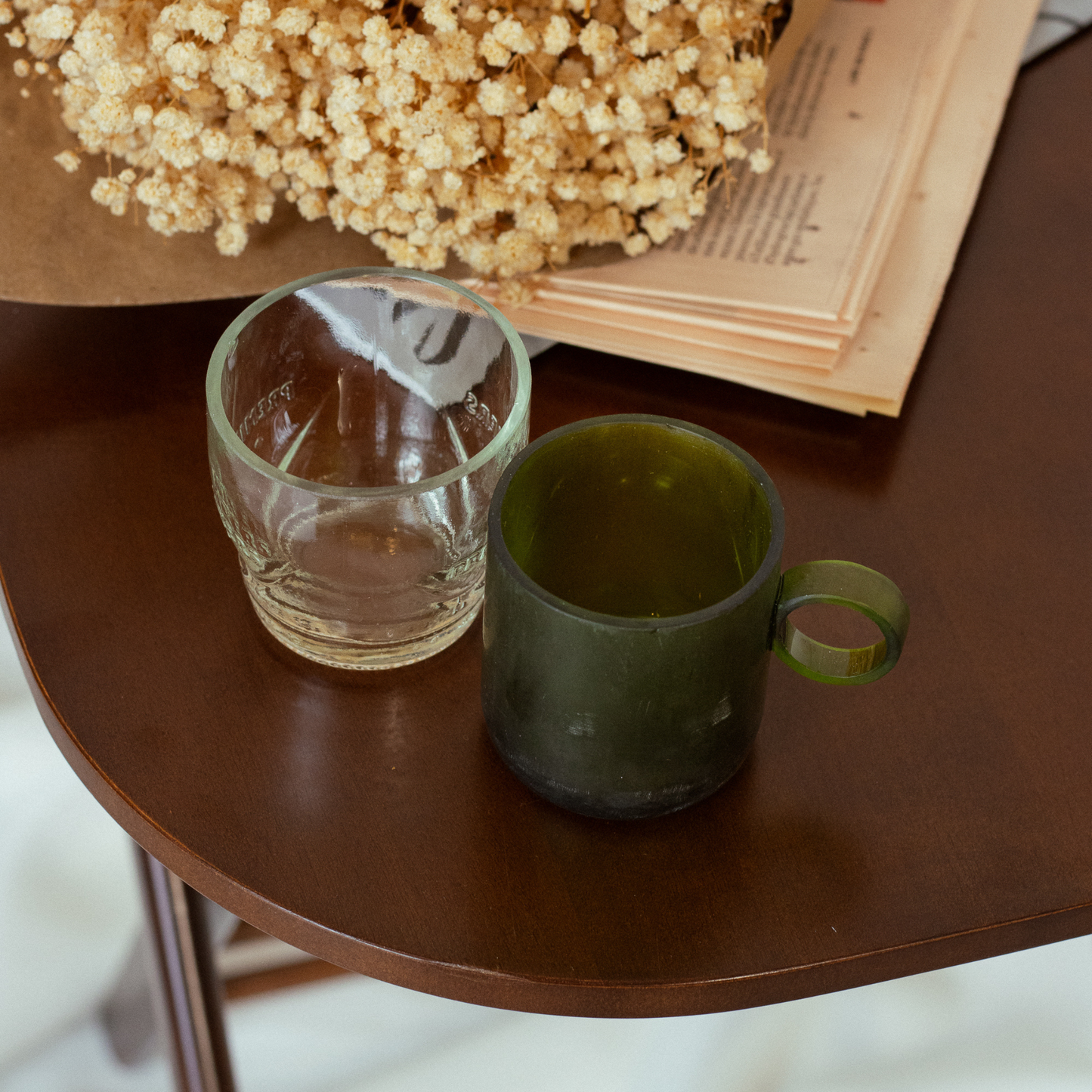 Our upcycled cup collection is all about unique shapes and distinct styles—from bold, modern silhouettes to charming, vintage-inspired designs. Each cup is crafted from repurposed glass bottles, giving you a stylish and sustainable way to enjoy your favorite drinks, whether it’s coffee, tea, or a creative cocktail.
